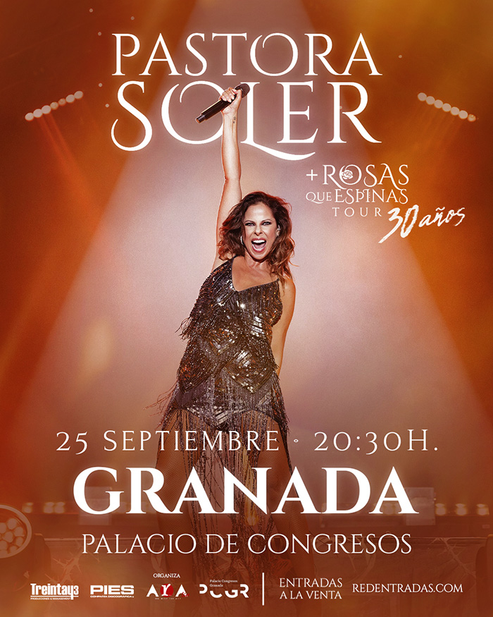Pastora Soler una de las grandes voces de la música española, llega al Palacio de Congresos de Granada para celebrar sus 30 años de carrera con el tour “Rosas y Espinas”, un recorrido por los grandes éxitos que han marcado su trayectoria y las nuevas canciones que definen su presente artístico.
