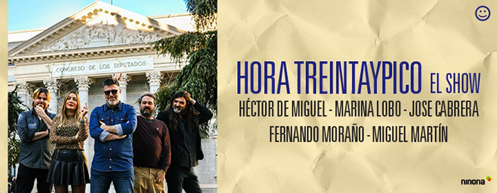 cada show en una celebración de la comedia más comprometida y en una auténtica fiesta junto a sus fieles seguidores y seguidoras. ‘Hora Treintaypico: el show’ es la traslación a los escenarios de ‘Hora Veintipico’ en 90 minutos de comedia sin filtros con dos objetivos muy claros: que Héctor de Miguel sea aún más rico y mejorar el miserable sueldo que les paga a sus guionistas. Con Fernando Moraño, Jose Cabrera, Marina Lobo, Miguel Martín y