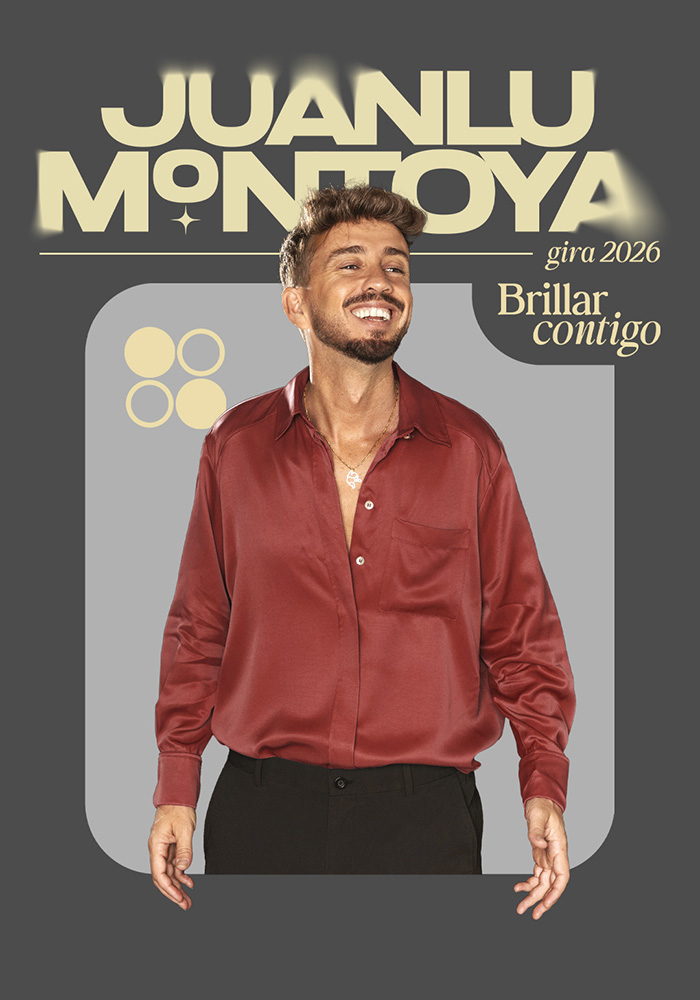Juanlu Montoya es un cantautor vinculado a la música desde muy joven, que ha desarrollado un estilo propio dentro del pop aflamencado, destacando como cantante, compositor y productor. Su capacidad para reinventarse en cada disco lo ha posicionado como uno de los artistas con mayor proyección nacional en su género. Canciones como “La Fiesta de los Primos”, “Ana María” y “Cupido” acumulan millones de visualizaciones, dándole gran visibilidad en medios. En 2020 lanzó “Alegras los Días Malos”, considerada por muchos como la canción del confinamiento, y más tarde “Arrebato de Amor”, éxito del verano con más de 20 millones de reproducciones. Con este crecimiento publicó su tercer álbum, Con Calma, que incluye temas como “La Solución” y “Desde Cero”. Con más de cien conciertos en tres años, en 2023 lanzó el single “Te-Lo Mereces”, inicio de su álbum y gira Sonriendo al Reloj, con canciones como “Mi Salvadora”, “Contigo por delante”, “Tus esquemas” y “Si tú no vienes”. En marzo de 2026 arrancará su nueva gira ¨Brilla Contigo¨, presentando temas inéditos.